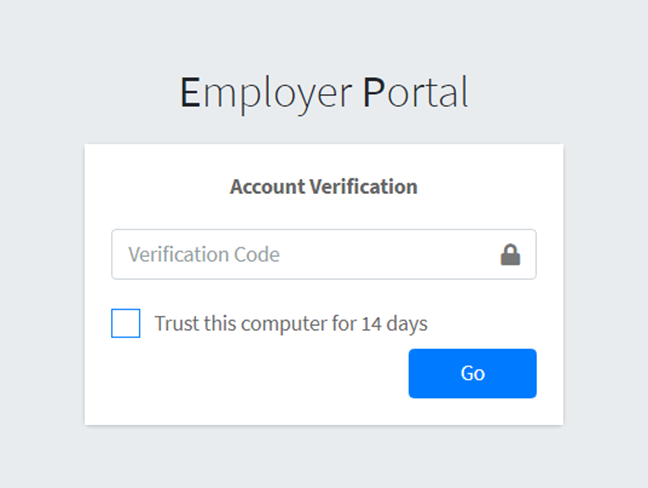 Periodically, a multi-factor authentication email containing a unique verification code will be transmitted to the user to enter prior to accessing the Employer Portal.