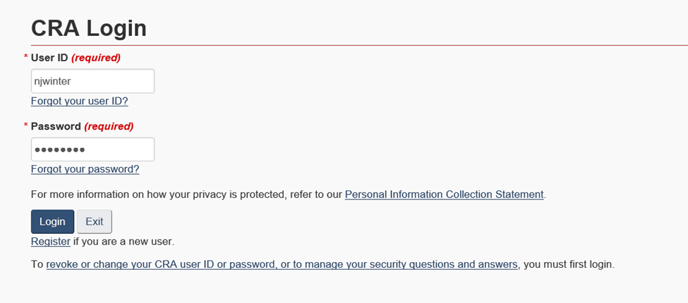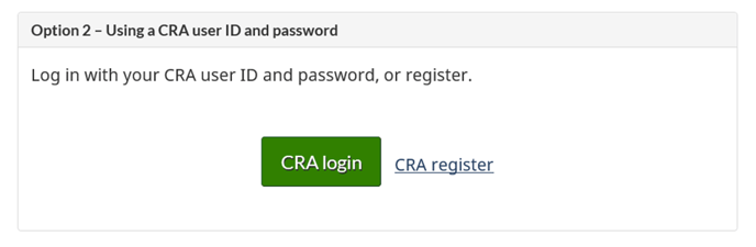 - Login using your registered credentials via Option 2 (CRA User ID and password).