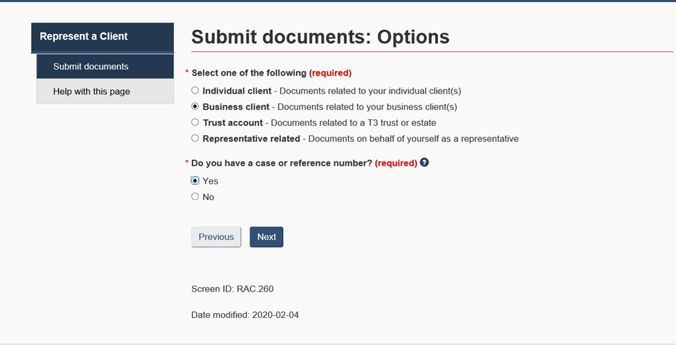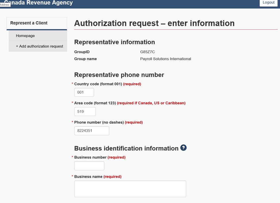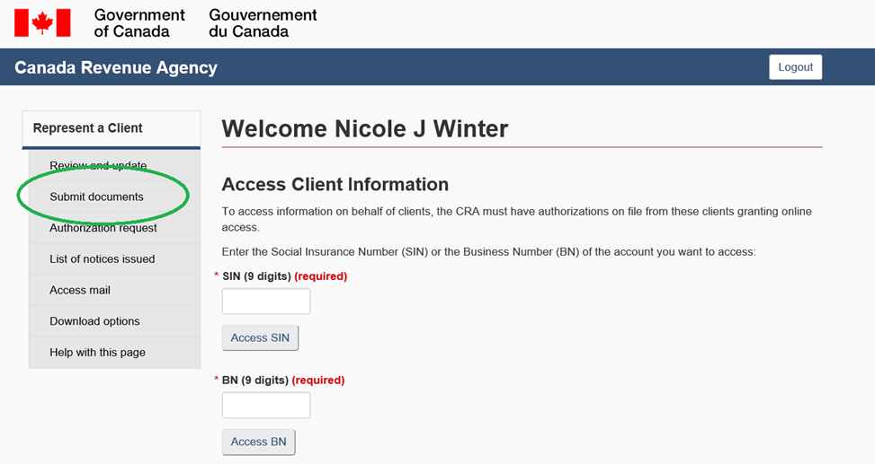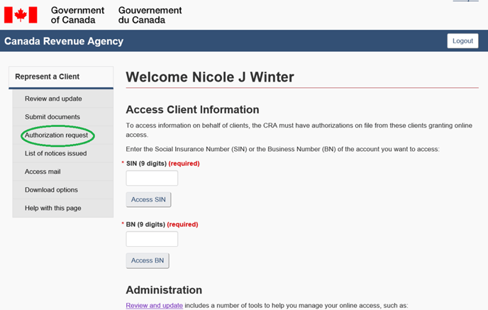- Visit https://www.canada.ca/en/revenue-agency/services/e-services/represent-a-client.html