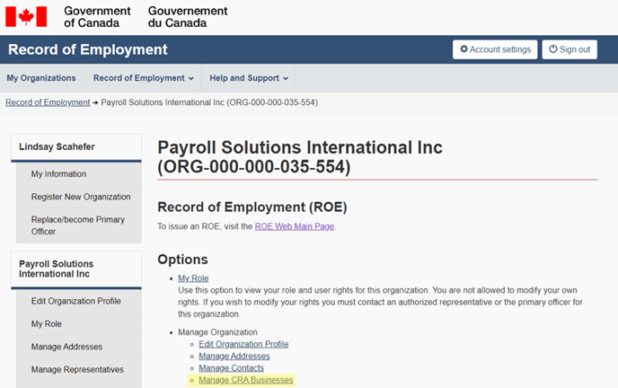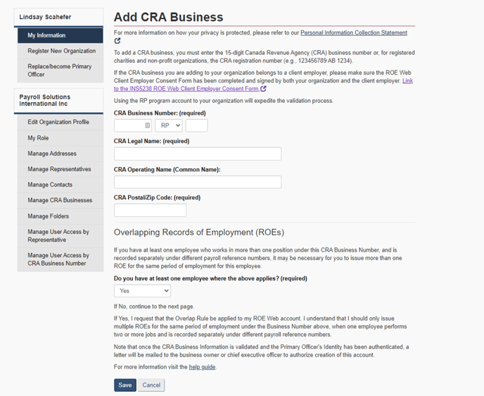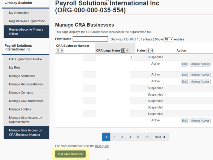 Scroll to the bottom of the webpage and click on Add CRA Business