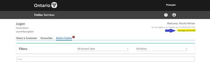 Once logged in, navigate to the "Manage My Profile" section of the ONT-TAXS portal. This section allows you to add or manage your tax accounts.