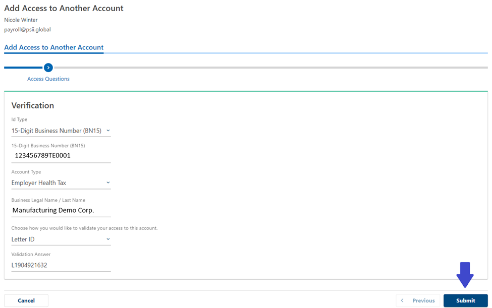 Upon successful submission, you will receive a confirmation message indicating that your EHT account has been added to the ONT-TAXS portal. The Clients account will now be activated and ready for use under PSII's account.