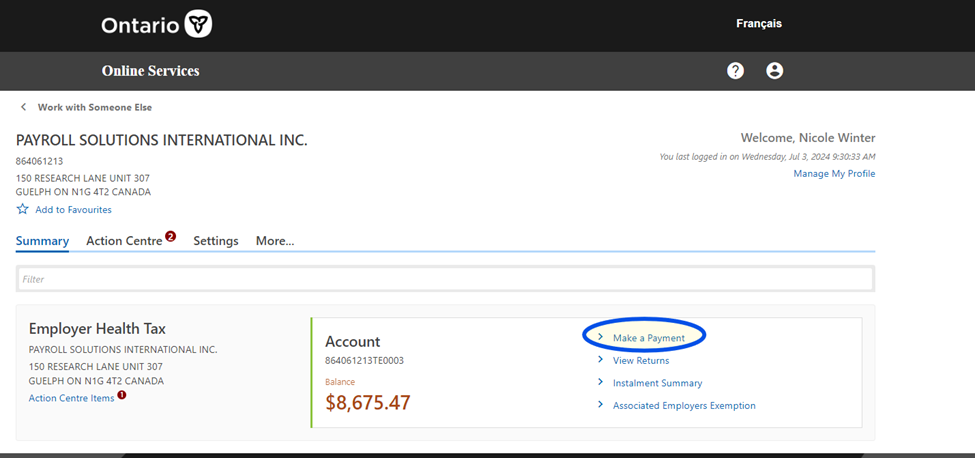 - Registered EHT Account: The Client must already have a registered EHT account with the Ontario Ministry of Finance.