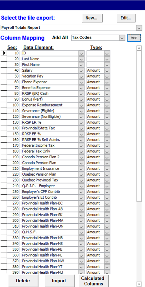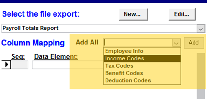 For the purposes of a year-to-date report, using the Add All bulk selections ensures all applicable information relating to payroll totals is included in the template.
