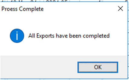 - A pop-up will appear confirming the export has been created and saved, click OK