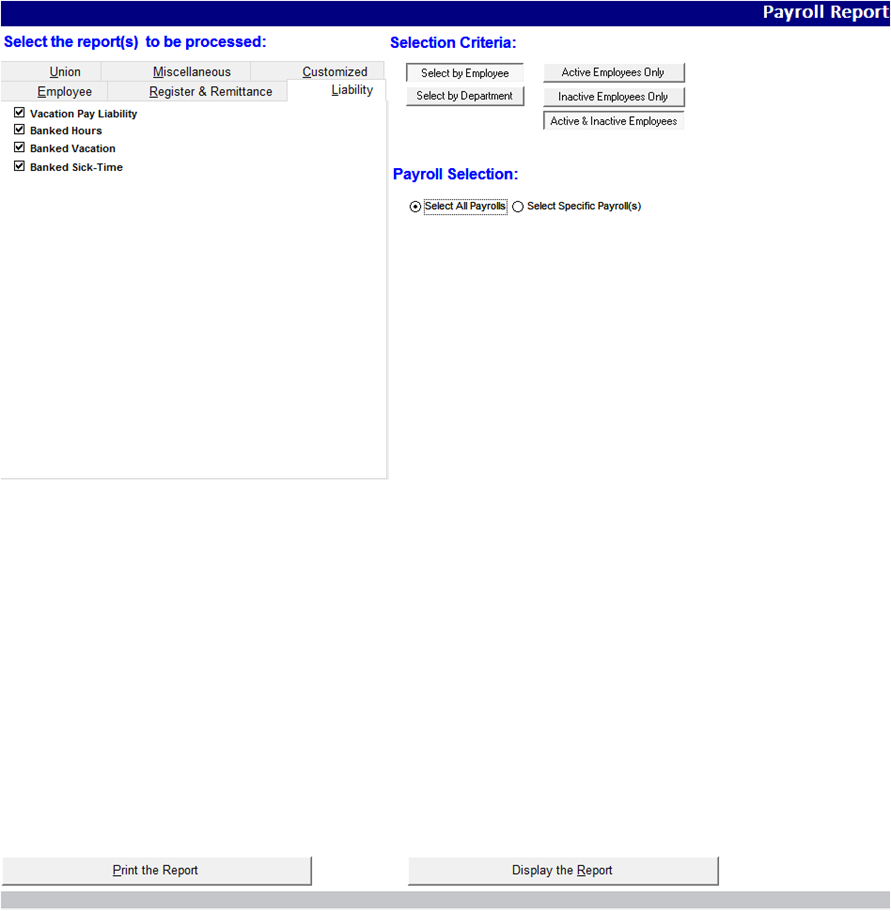 - Select All Payrolls: this option will group all payrolls and employees into one report