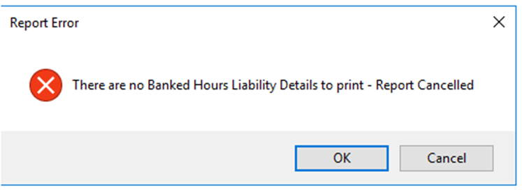 The system will display the liability reports. If the client does not have any of the selected liabilities setup (ie; Client does not accrue sick time) a report will not be created for that particular liability. A report error pop-up will appear notifying there is no report to create. Click OK
