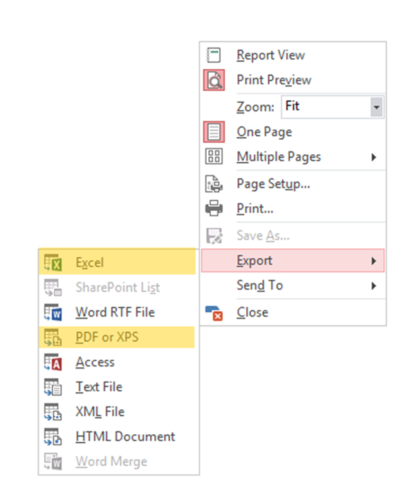 The reports can be exported to PDF or excel format by right-clicking on the report, select Export, then select the preferred format.