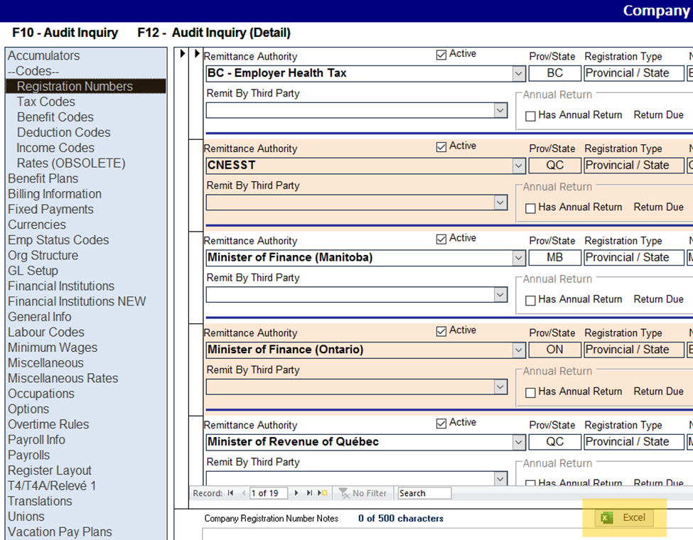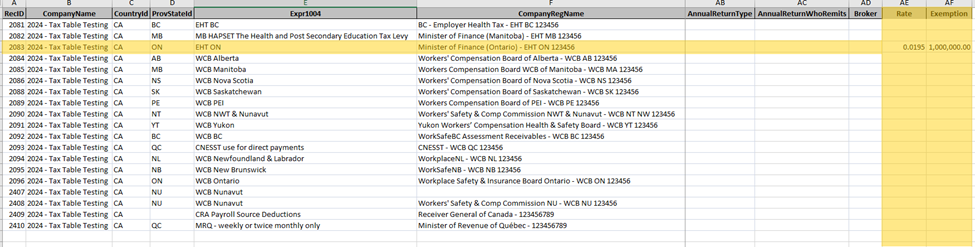 Select the applicable tax code to view the premium rate or exemption (ie; worker’s compensation, provincial health, etc).