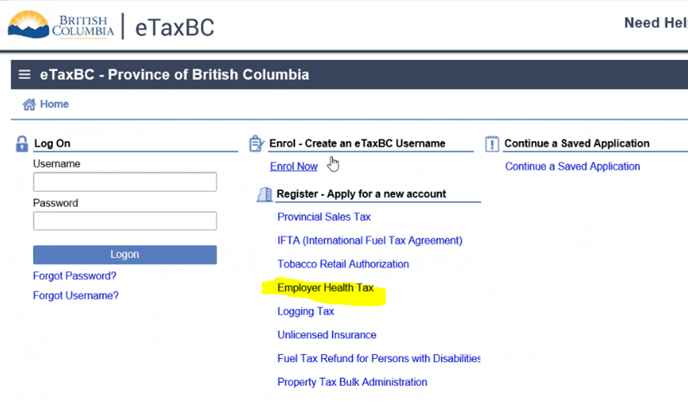 This SOP is intended for individuals or organizations required to pay the Employer Health Tax in British Columbia and who need to register their account on the eTaxBC platform.