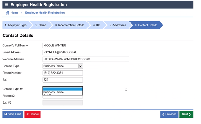 Enter the contact information for PSII as our company is completing the registration on our Client's behalf.